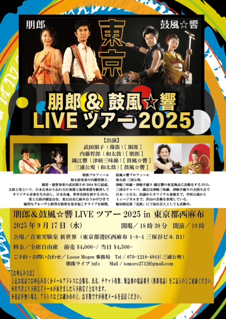 【時間】 OPEN 18:30/START 19:00 【料金】 前売4000円/当日4500円 (1ドリンク別途)